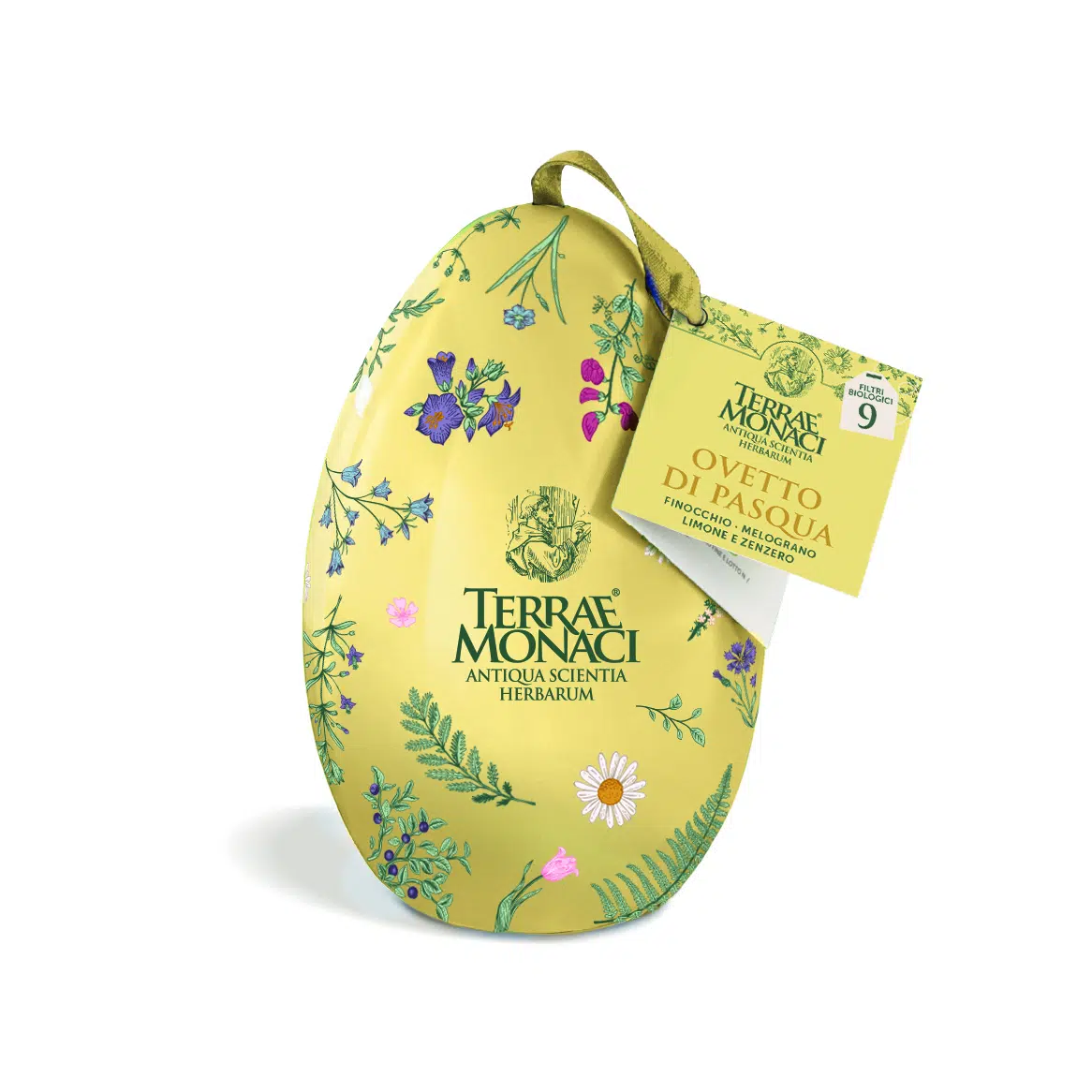 Celebra la Pasqua con un tocco di originalità e relax’! Questo elegante ovetto Terrae Monaci racchiude una selezione di tisane Bio, perfette per regalare momenti di benessere e serenità.